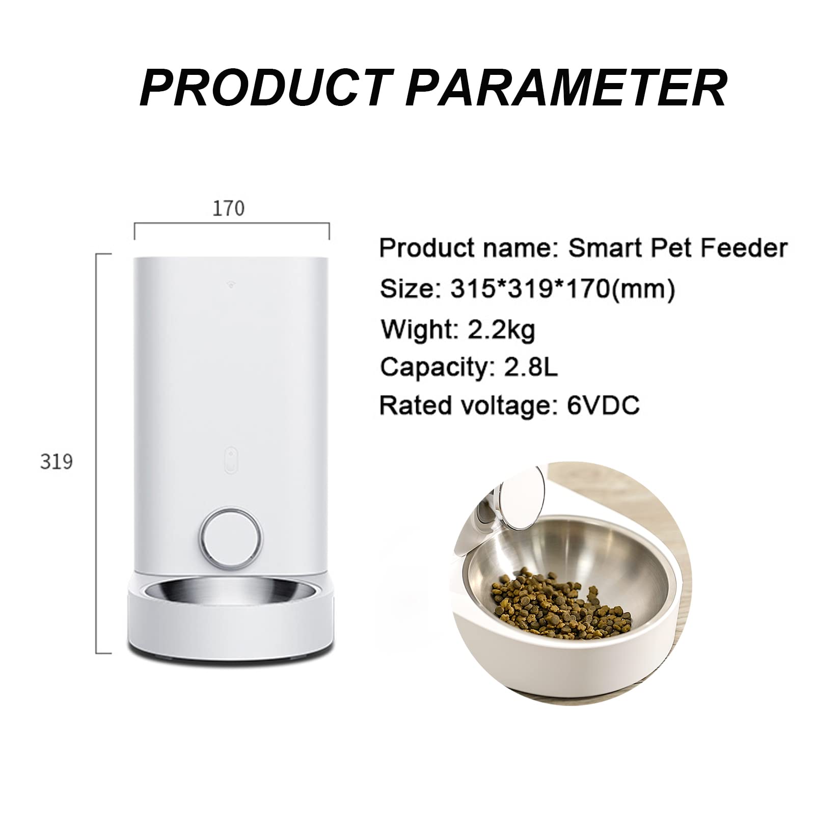 - 🐶[SCIENTIFIC FEEDING]Scientific feeding, timed and quantitative. Can store 1.5kg of pet dry food (equivalent to half a month of adult cat food), effective capacity 2.85L. suitable for dry food less than 12mm, 5g per serving, up to 10 servings