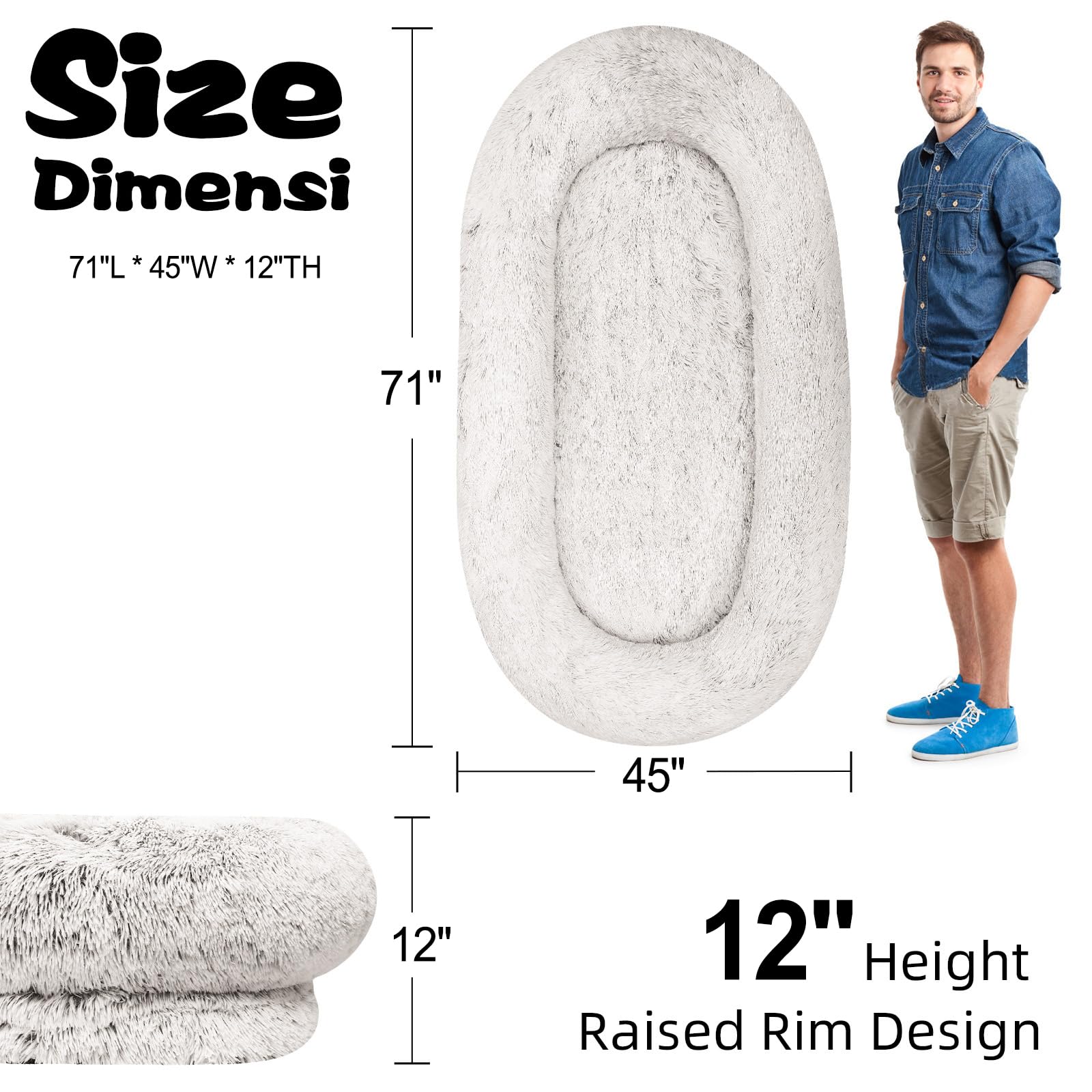 Trelsanopaws Giant Human Dog Bed - 3D Sponge Beanbag for Large Dogs (71" x 45" x 14", Gradient Grey)