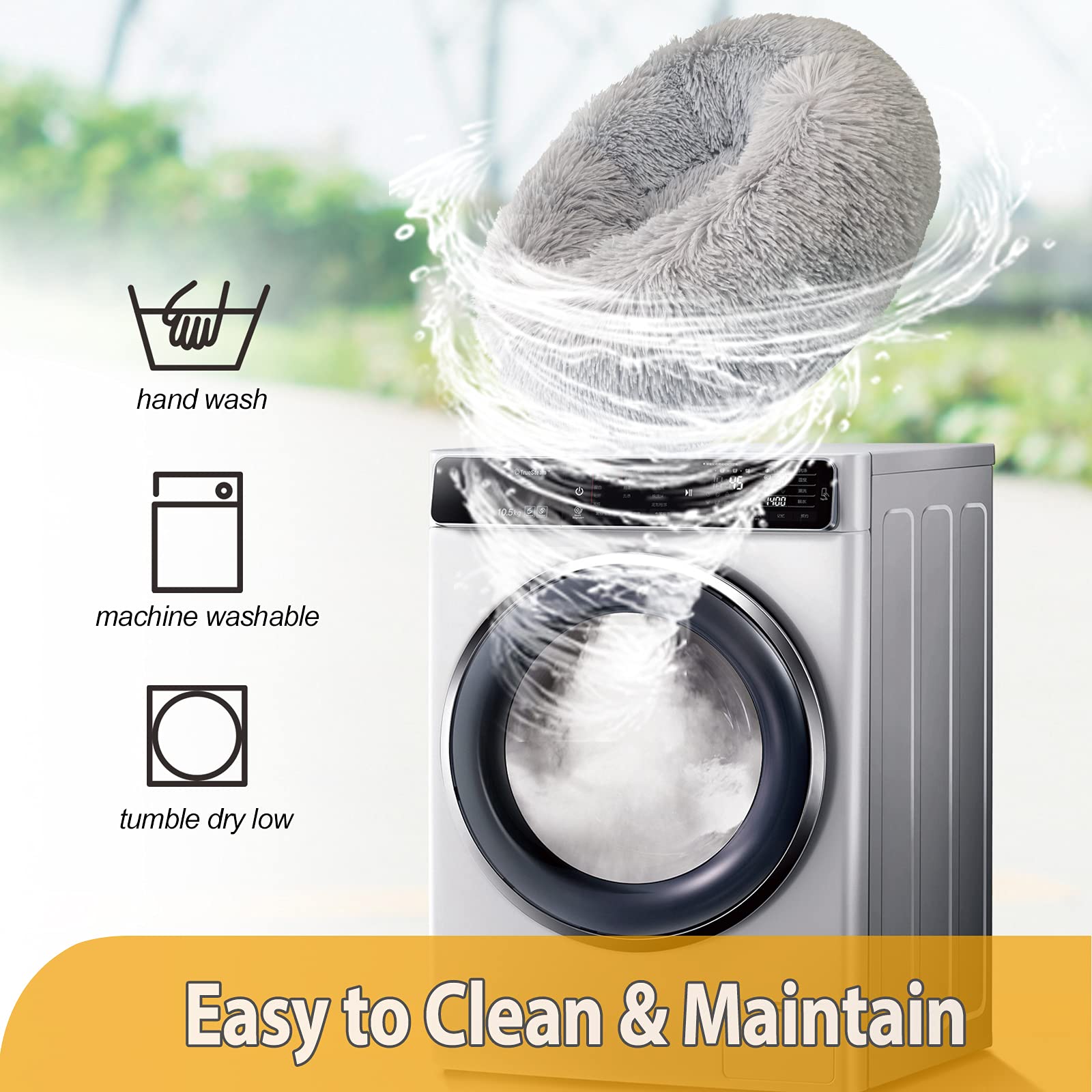 - ➤EASY TO CARE: Hand washable or Please machine wash the whole pet bed separately with cold water in a gentle cycle. Do not bleach. Tumble dry low. NOTE: Because of Vacuum packaging, the bed may looks flat when you first open, please shake, pat the bed and wait for 1-2 days to make it back to fluffy status before using!