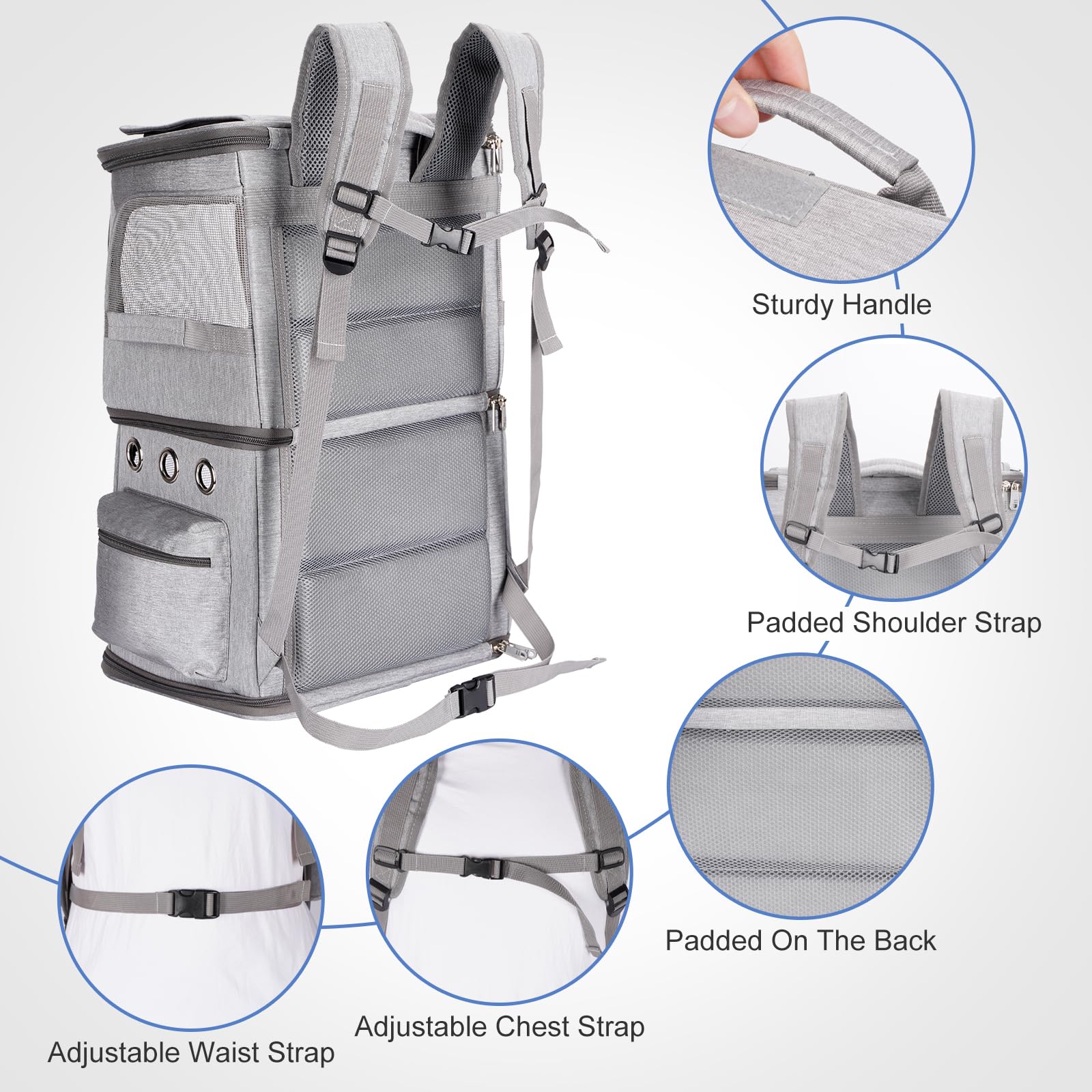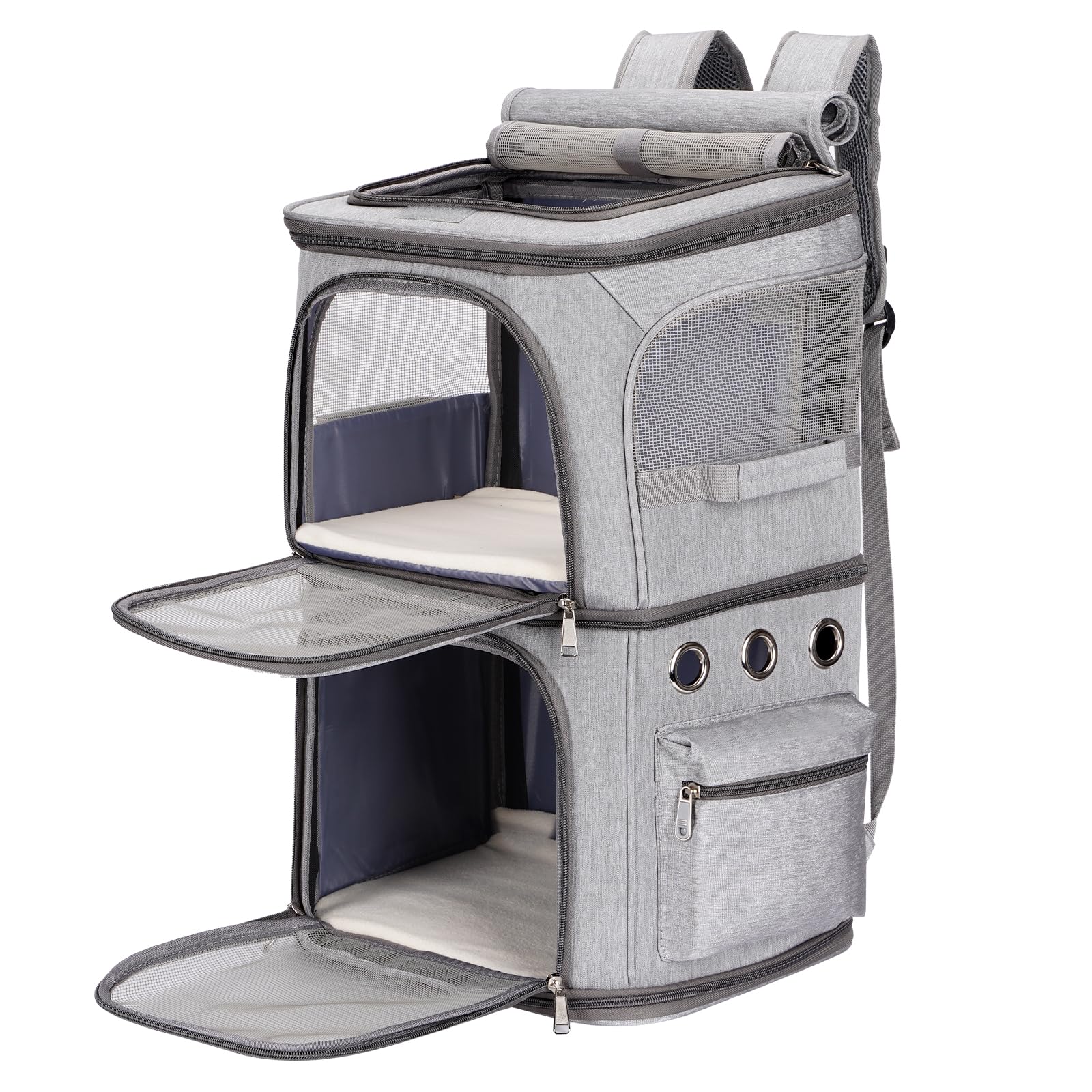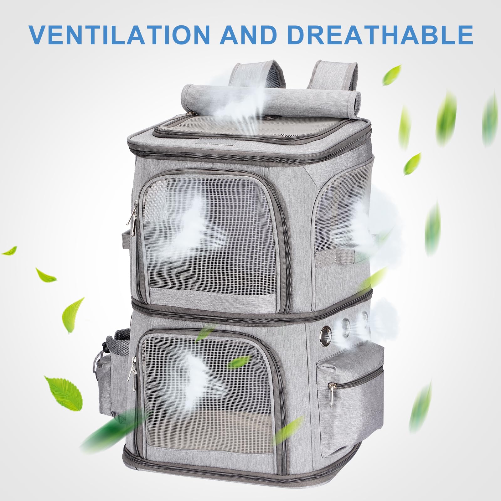 FASNATI Double-Compartment Pet Carrier Backpack, Cat Carrier Backpack for 2 Cats, Small Dogs, Perfect for Traveling/Hiking/Camping, Grey, XL
