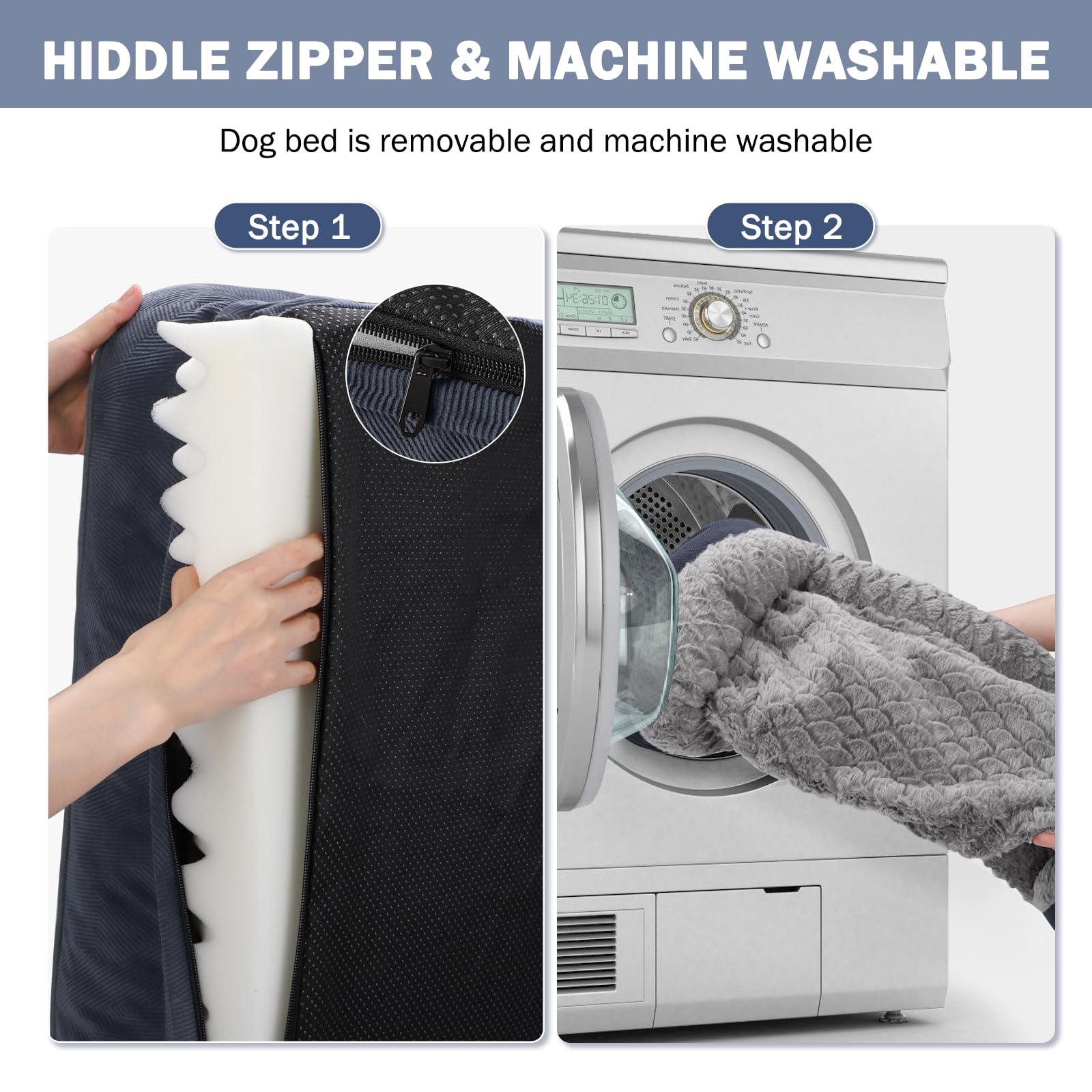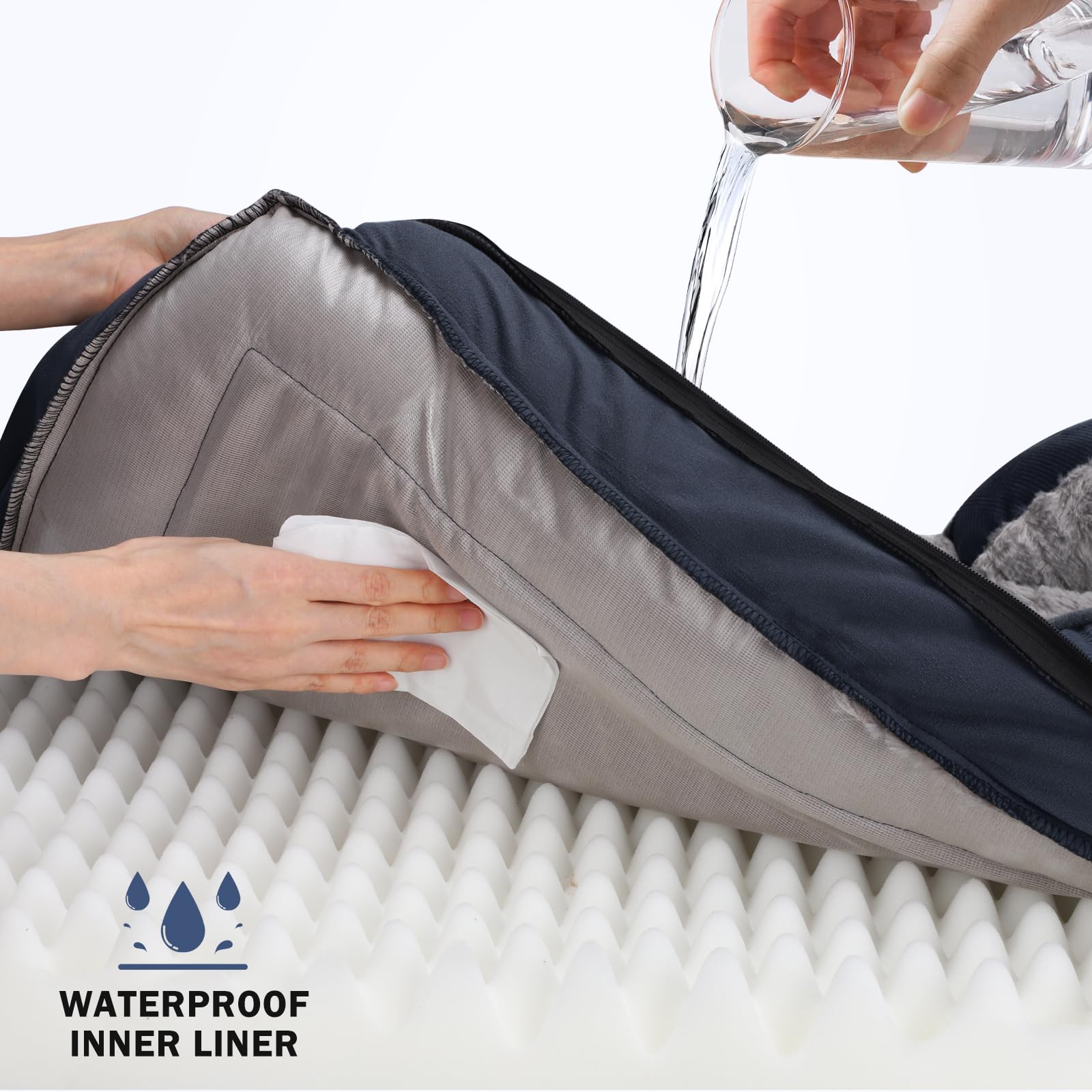 The Trelsanopaws Dog Bed is designed for convenience with a removable cover featuring a zipper closure. Simply unzip the cover for easy machine washing. Additionally, the egg-shaped foam mattress is encased in a waterproof liner to provide full protection and maintain the bed’s cleanliness over time.