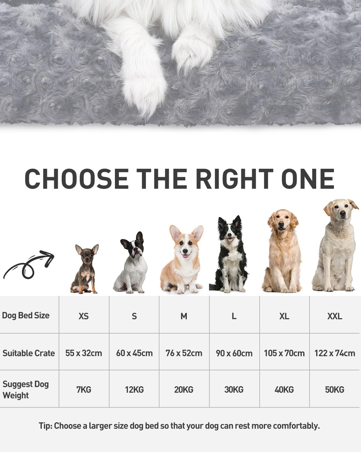 Trelsanopaws Large Dog Bed - Washable Calming Crate Mattress with Non-Skid Bottom & Anti-Anxiety Cushion (90 x 60 x 8 cm, Dark Grey)