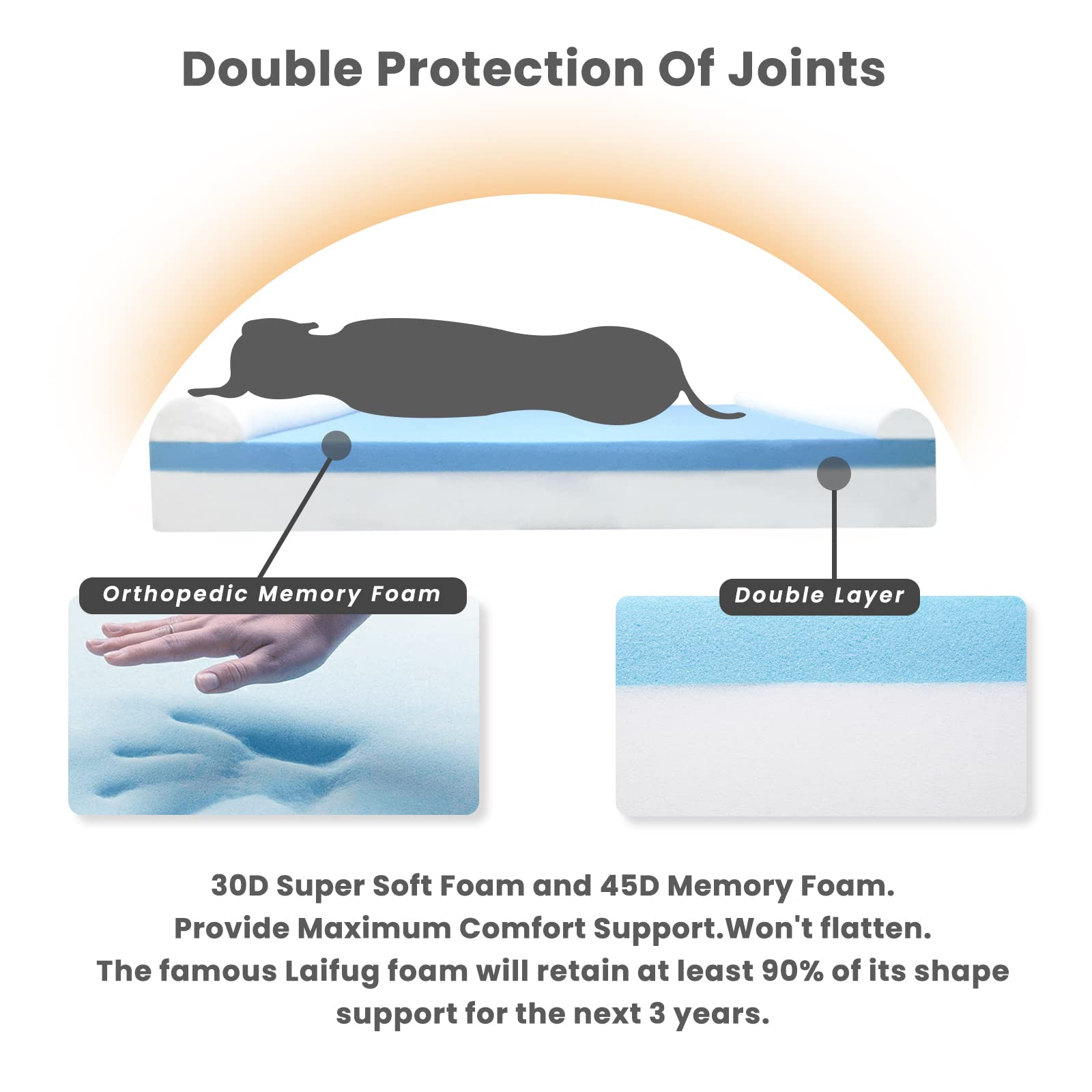 The Trelsanopaws Orthopedic Dog Bed is expertly crafted with an exclusive double pillow design that provides optimal comfort for your pet. With a 3" high pillow and a 1.8" pillow, this smart design supports your pet's head and neck, offering the maximum comfort and security they need for a restful sleep.