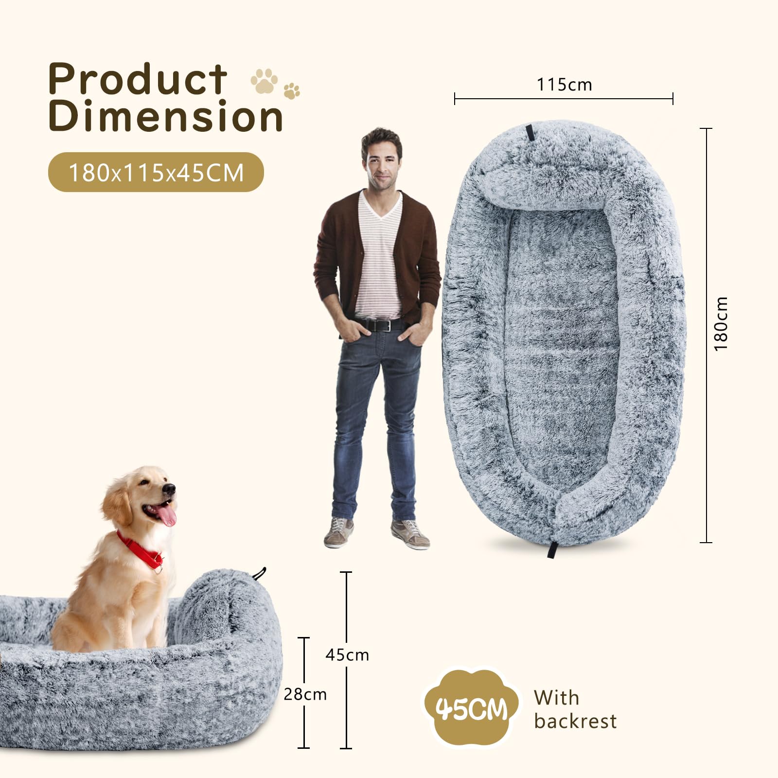 Measuring an impressive 180 x 115 x 45 cm, the Trelsanopaws Extra Large Human Dog Bed is spacious enough to accommodate both humans and multiple pets, making it the perfect choice for cozy moments together. Whether you're lounging with your furry friends or enjoying quality time with the whole family, this bed ensures ample room for everyone to relax comfortably.