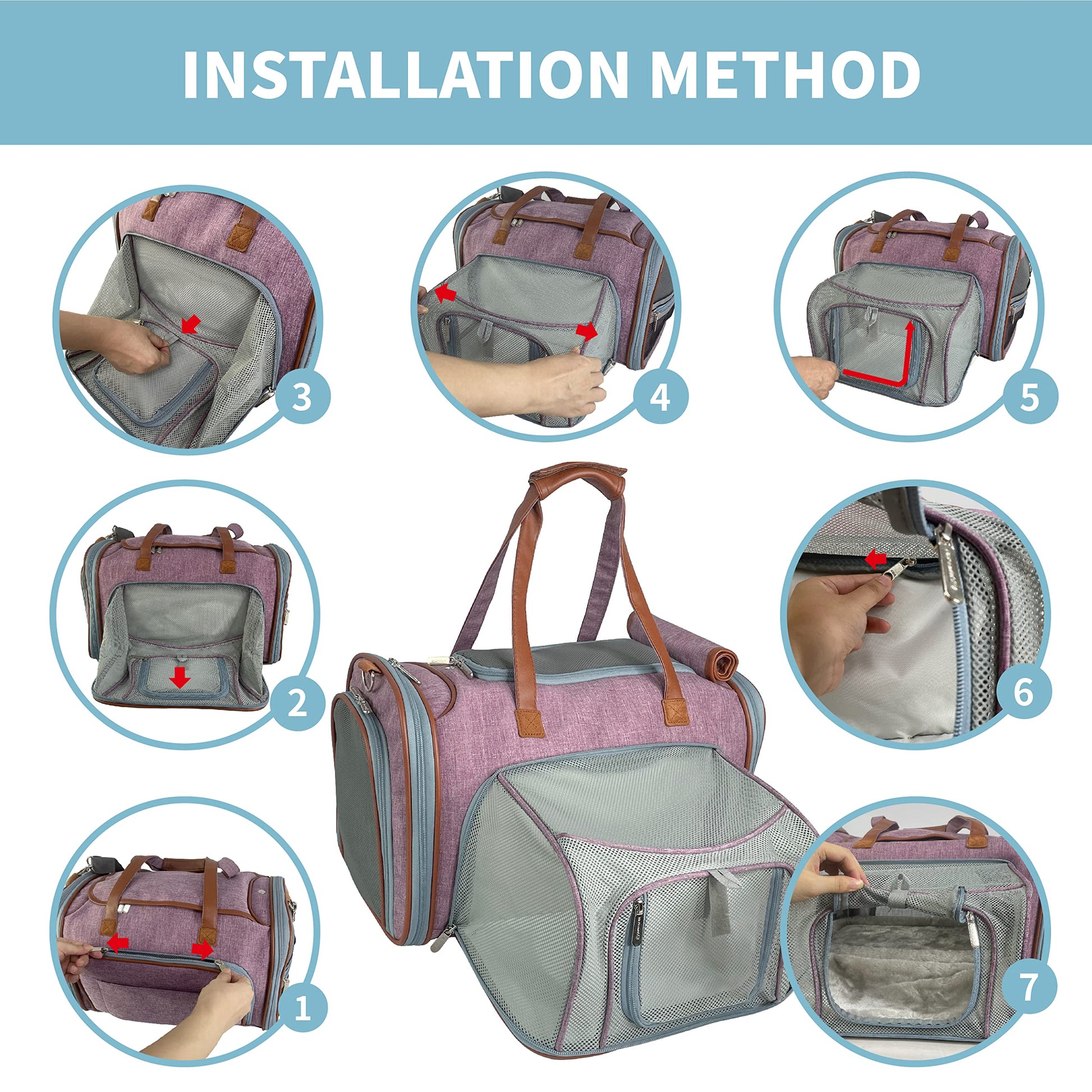 Mr. Peanut's Gold Series Mini Expandable Airline Approved Soft Sided Pet Carrier, Premium Brand Self Locking Zippers, Plush Faux Fleece Bedding with a Sturdy Plywood Base (Purple)