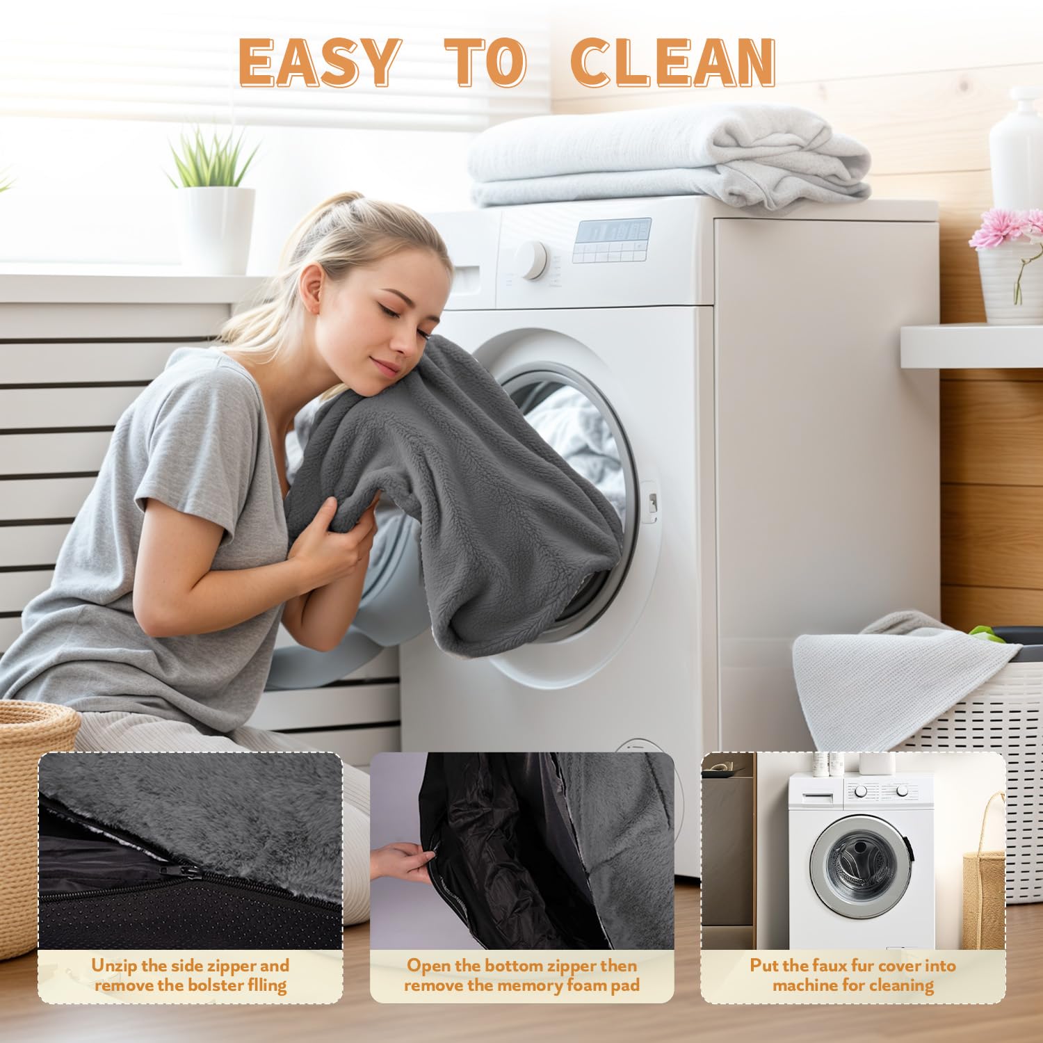 Trelsanopaws Human Dog Bed for Pets & Adults - Extra Large Beanbag with Washable Faux Fur, Blanket & Pillow (71" x 45" x 15", Dark Grey)