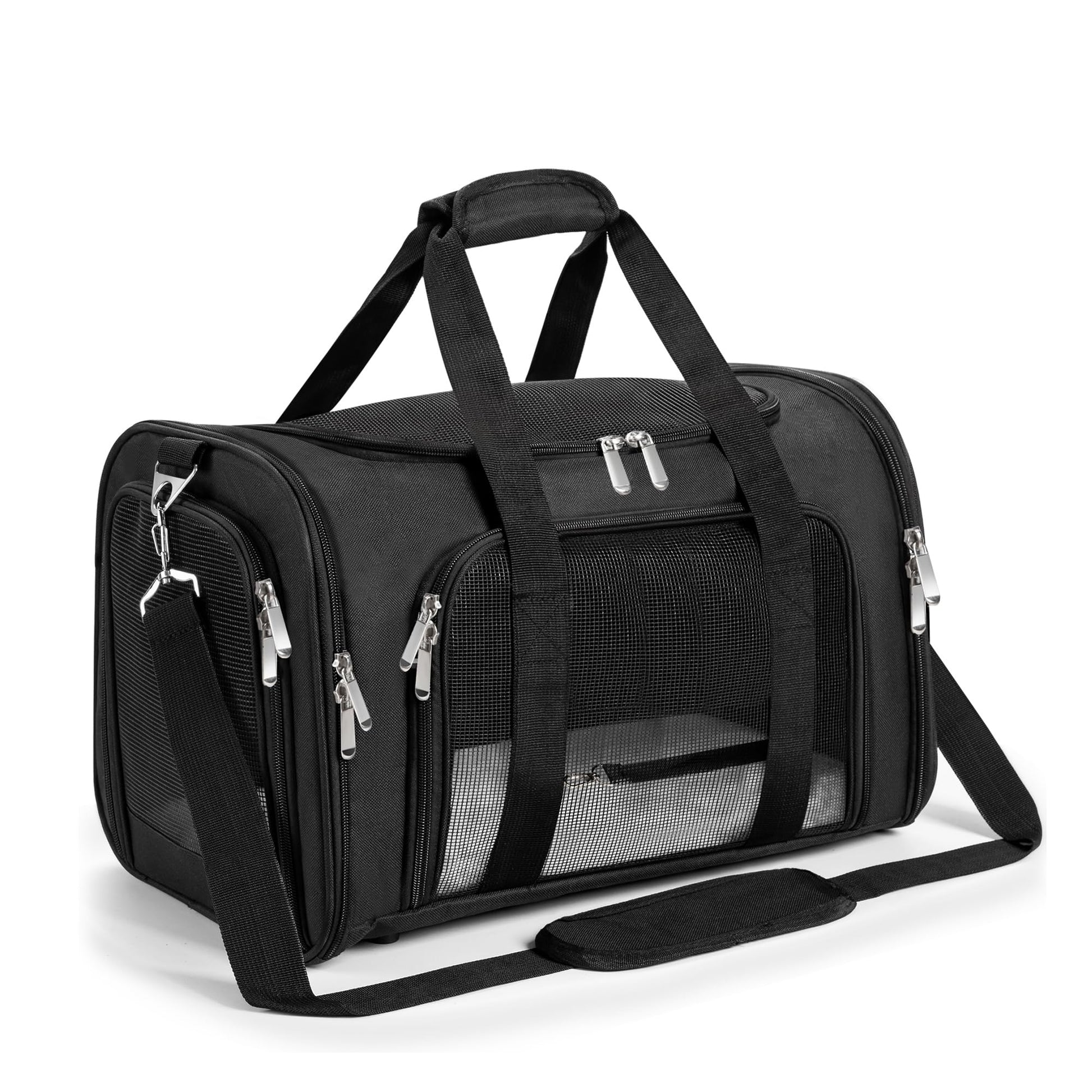 Soft Sided Cat/Pet/Dog Carrier Bag,Portable Foldable Pets Travel Carriers For Cats/Dogs With Shoulder Strap & Removable Mat,Durable Puppy Basket of 16 lbs Airline Approved - Black